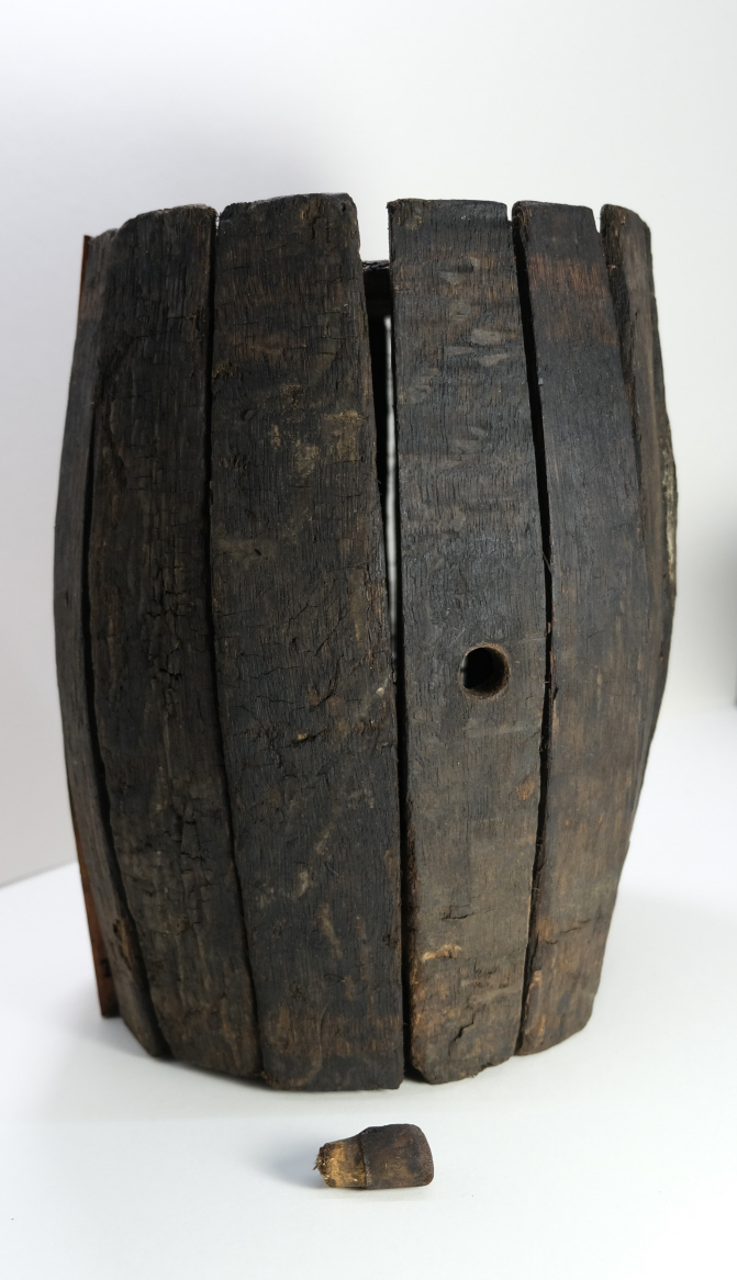 Houten blokschaaf, met losse wig om de beitel mee vast te zetten. De versierde bovenkant is vaag, het lijkt een datum met de cijfers 719 , maar het is moeilijk leesbaar. Uit vondstfoto’s en andere informatie blijkt dat de initialen I(J) D B zijn ingegraveerd aan de ene korte zijkant. Deze initialen zijn in alle waarschijnlijkheid van Jan de Bie/du Bois (VOC ID: 1585269), uit Middelburg. Hij was huistimmerman van beroep. De blokschaaf zou onderdeel zijn van het handgereedschap dat hij aan boord meenam. Vondst uit VOC-scheepswrak ‘t Vliegend Hert, gezonken in 1735. Collectie RCE.