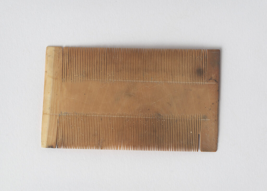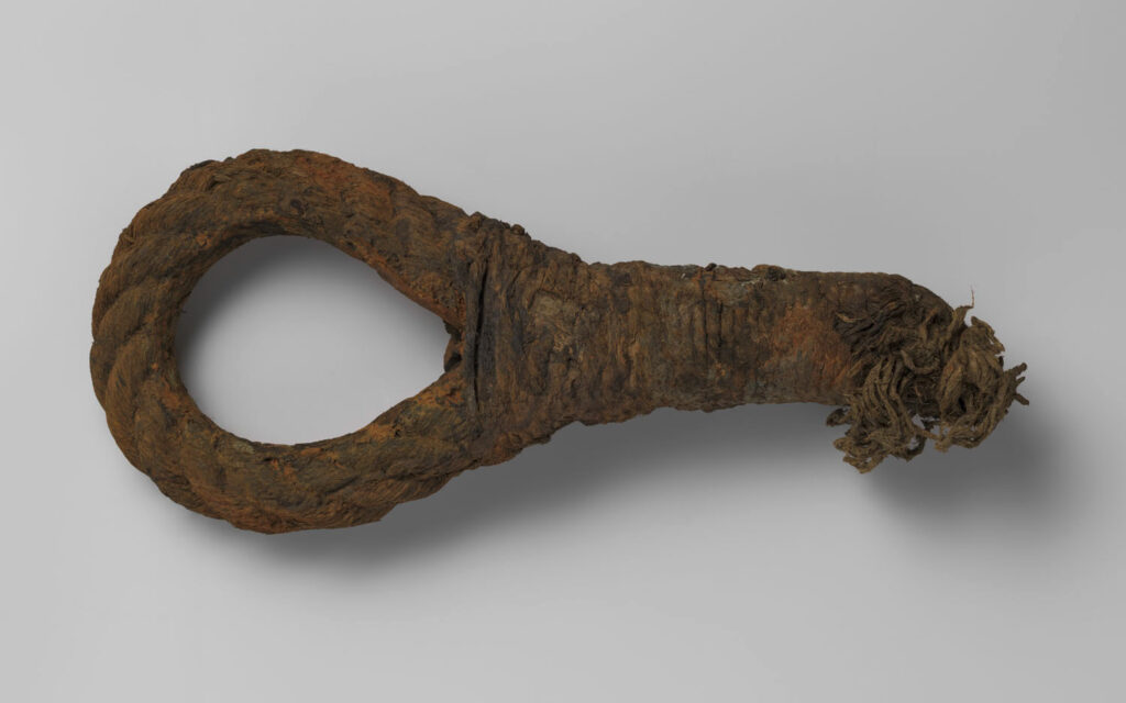 Deksel van een zeemanskist met de initialen A D I (J) , eigendom van Adriaan de Jongh (VOC ID: 1624831), de eerste onderstuurman en afkomstig uit Vlissingen. Deze deksel is rechthoekig en de initialen zijn in het hout gekrast, ook zijn sporen van de verdwenen ijzeren bevestigingen in oxidevorm zichtbaar. De stuurman was medeverantwoordelijk voor de navigatie aan boord van het schip. Vondst uit VOC- scheepswrak ‘t Vliegend Hert, gezonken in 1735. Collectie RCE.