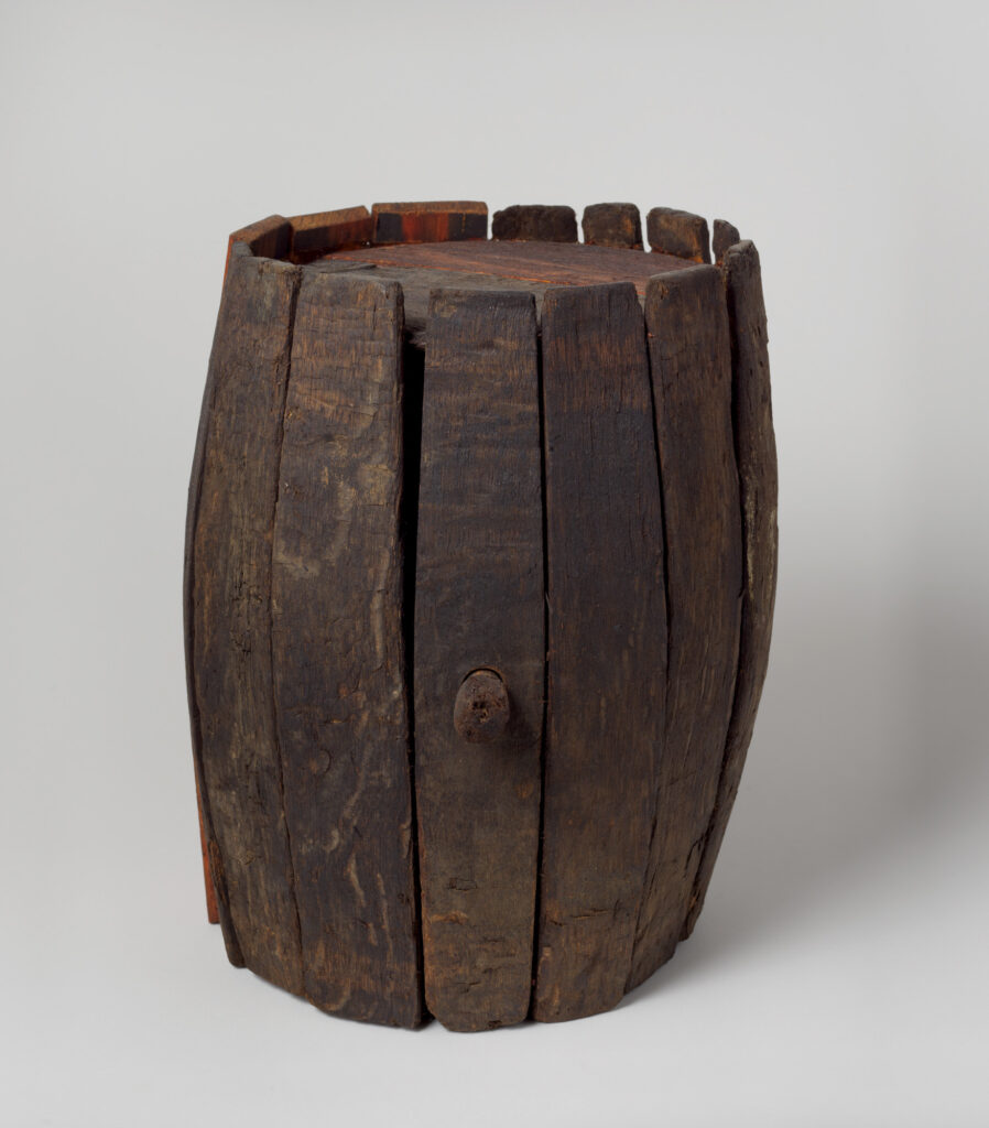 Dobbelen was streng verboden aan boord, maar het kwam wel voor. In deze kleine dobbelsteen is dus alleen de zes gekerfd. Waarom is de maker niet verder gegaan? Of is de dobbelsteen onderdeel van een sieraad?