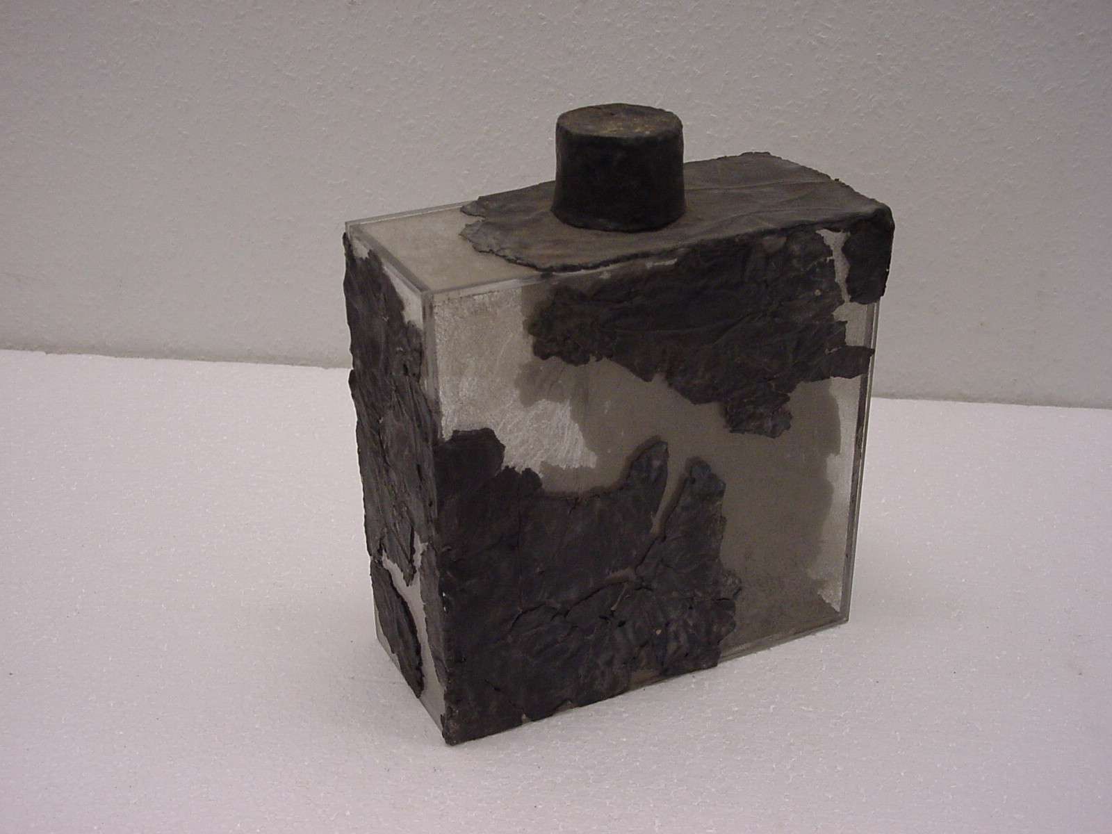 Theeblik, alleen het binnen deel, voorraadblik of -houder voor thee, tinnen fragmenten met plexiglas opbouw