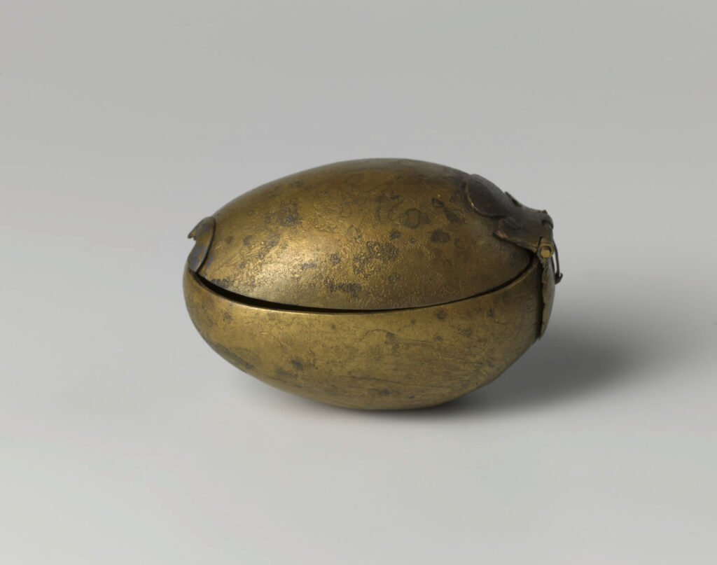 Grote gesp, gemaakt van een koperlegering. De gesp werd gebruikt voor een schouderbandelier, een brede draagriem of band over de schouder en borst. Bijvoorbeeld om een sabel of degen in te dragen. Het binnendeel is open en is verdeeld in twee delen, met in het midden de gespsluiter. Ter decoratie is een vrouwenkop op de bovenrand gemaakt. Aan de zij- en onderkant zijn onder andere bladeren, krulmotieven en de Sint Jacobsschelp te zien. De Sint Jacobsschelp staat in de christelijke symboliek voor wedergeboorte. Vondst uit VOC-scheepswrak ‘t Vliegend Hert, gezonken in 1735. Te zien in de vaste presentatie Ga mee naar zee, ruimte Bepakken en bemannen.